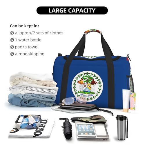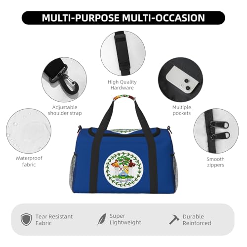 • Women's Overnight Bag and Hospital Bag: The Belize Flag print sport gym bags is equipped with comfortable adjustable shoulder straps and padded handle to adapt to different scenarios and personal preferences. You can choose to carry the bag by hand or adjust the length of the shoulder strap to hang it on your shoulder for the most comfortable carrying experience.