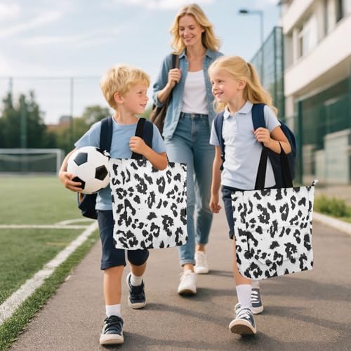 HOT ! Black Leopard Print Tote Bag for Book Lovers Reusable Bags with Zipper Pocket for School Work Shopping