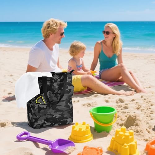 Black Camouflage Tote Bag for Book Lovers Reusable Bags with Zipper Pocket for School Work Shopping 6