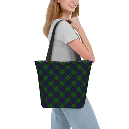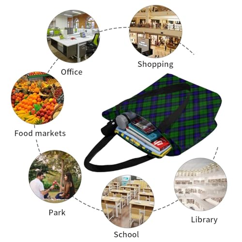 HOT ! Armstrong Tartan Blue And Green Plaid Reusable Zippered Shoulder Bag, Stylish Polyester Tote With Wide Handle & Inner Pocket, Lightweight Durable Shopping & Travel Bag