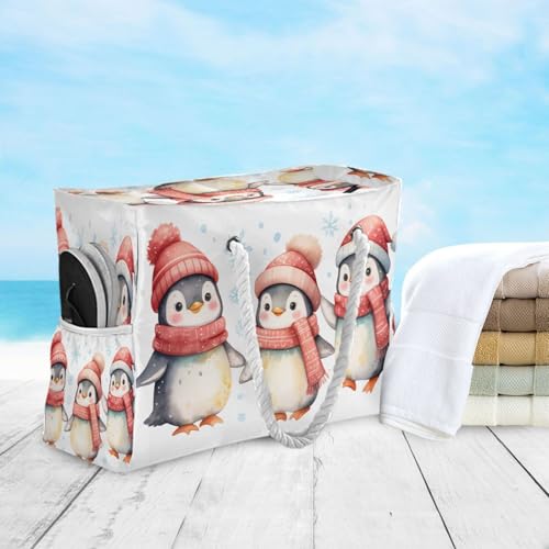HOT ! Penguin Scarf Snowflakes Beach Tote Bag for Women Waterproof Swim Pool Extra Large Beach Bags with Zipper Carry On Travel Bag for Yoga Gym Women Vacation Essentials Nurse