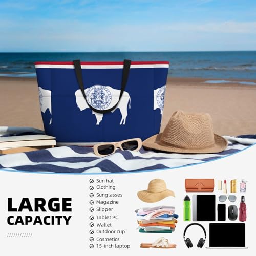 Large Capacity Beach Bag Women Print Tote Bag Waterproof Beach Bag Reusable Travel BagWyoming State Flag 4
