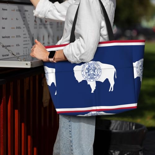 More information about Large Capacity Beach Bag Women Print Tote Bag Waterproof Beach Bag Reusable Travel BagWyoming State Flag