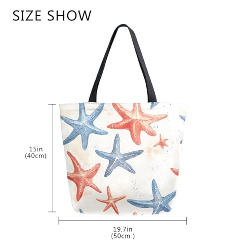 HOT ! Extra Large Shoulder Tote Bag for Beach Travel Weekender Gym Retro Coral Blue Starfish Reusable Grocery Canvas Shopping Bag