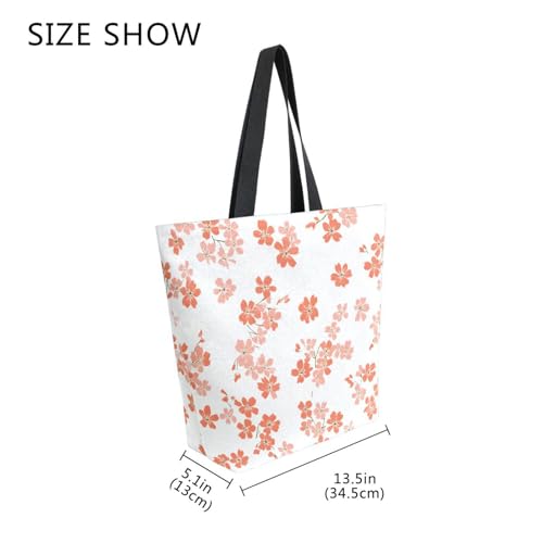 HOT ! Extra Large Shoulder Tote Bag for Beach Travel Weekender Gym Small Flower Blossom Coral Pattern Reusable Grocery Canvas Shopping Bag