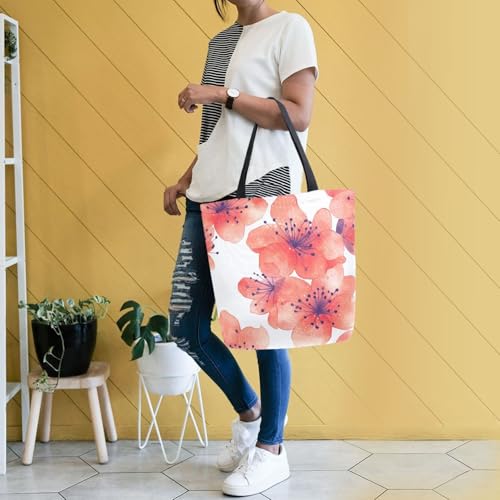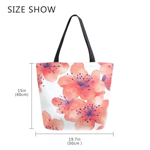 HOT ! Extra Large Shoulder Tote Bag for Beach Travel Weekender Gym Red Coral Flower Pattern Reusable Grocery Canvas Shopping Bag