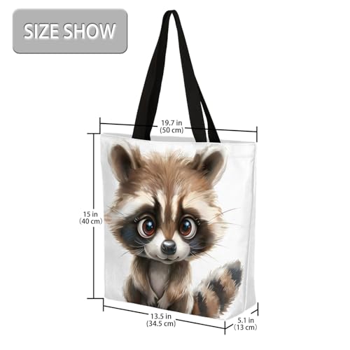 HOT ! Cute Raccoons Large Capacity Canvas Tote Bag Stylish Handheld Shoulder Bag Reusable Shopping Bag for Work Travel Beach Trips Shopping