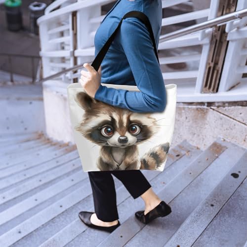 Cute Raccoons Large Capacity Canvas Tote Bag Stylish Handheld Shoulder Bag Reusable Shopping Bag for Work Travel Beach Trips Shopping 5