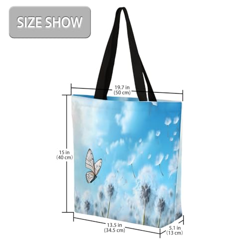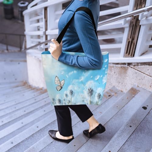 Sky Butterfly Dandelion Large Capacity Canvas Tote Bag Stylish Handheld Shoulder Bag Reusable Shopping Bag for Work Travel Beach Trips Shopping 6