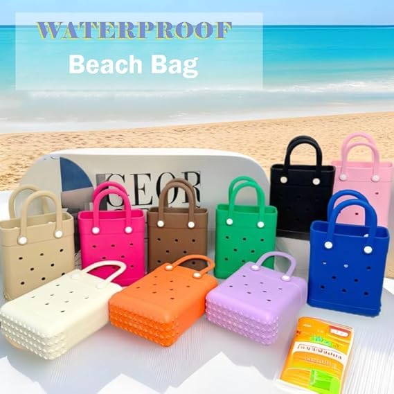 • 【Beach Tote Bag For Girls】This mini EVA rubber bag features a non-slip bottom for stability, and the handles can bend freely. The perforated hole design allows for easy decoration, so you can personalize this rubber beach bag with additional accessories, making it uniquely yours