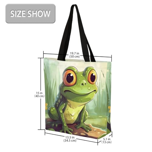 Cute Watercolor Frog Pond Large Capacity Canvas Tote Bag Stylish Handheld Shoulder Bag Reusable Shopping Bag for Work Travel Beach Trips Shopping 6