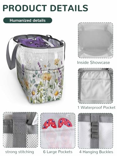 Mesh Beach Bag Oversized Tote Bags for Women Farm Daisy Flower on White Large Travel Pool Bags with 8 Pockets 7