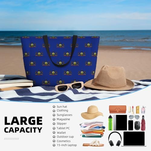 HOT ! Pennsylvania State Flag Extra Large Tote Bag For Women,Foldable Beach Bag With Pocket Weekender Travel Overnight Bag