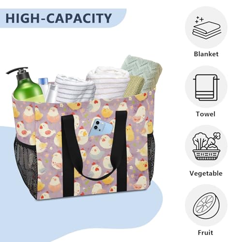 linqin Cute Chickens Flower Pink Utility Tote Bag for Women with Handles Foldable Grocery Bags Reusable Water Resistant for Laundry 7