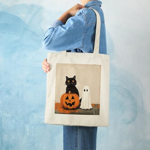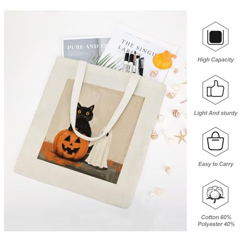 HOT ! Halloween Purple Polka Dot Ghost Canvas Totes for Women Vintage Halloween Travel Beach Bag for Shopping Grocery Work