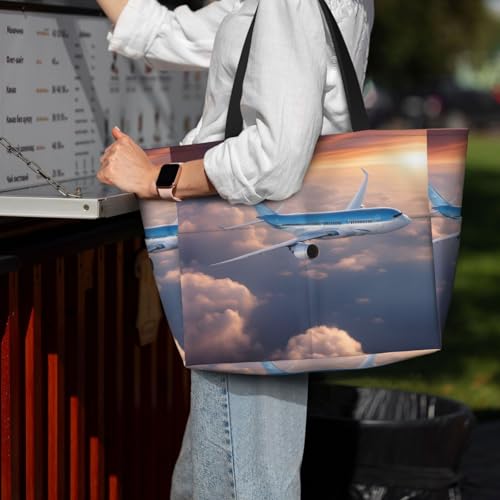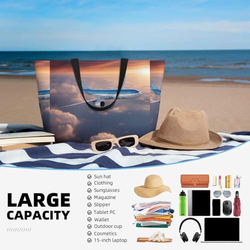 • Extra Large Capacity: The Beautiful Sky Airplane Large Tote Bag Measures 15" X 17.7" X 6.7", Designed To Hold Everything You Need For A Day At The Beach, A Weekend Away Or A Long Term Travel, Such As Travel Essentials, Cosmetics, Sunscreen, Clothes, And More. The Inner Pocket Keeps Soggy Swimsuits, Towels And Toiletries Separate From Your Dry Belongings.