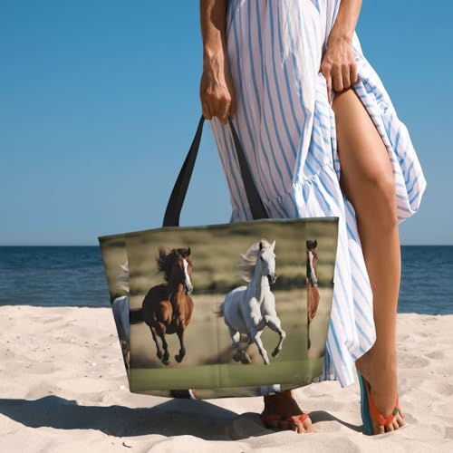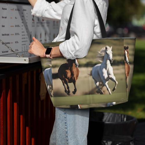 • Two Ways To Carry: The Running Horses Beach Bag For Women With Double Handles Makes It More Comfortable For You To Carry. Not Only Can Switch Up Your Style Effortlessly, Also Minimize Your Stress. The Long Shoulder Straps Can Relieve Weight, So Even When The Bag Is Fully Loaded, It Won'T Pressure On Your Shoulders.