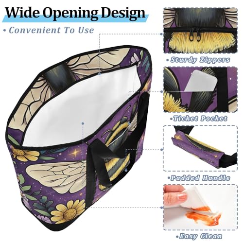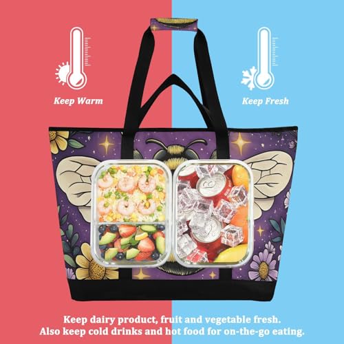 HOT ! Large Insulated Tote Bag Closeup Bee Florals for Grocery Shopping Reusable Tote Bags for Women Men, Cooler Bag with Zippered Top & Handles for Beach Picnic Travel