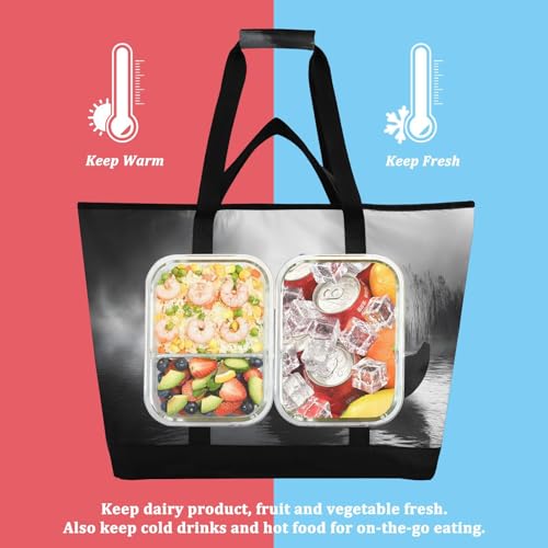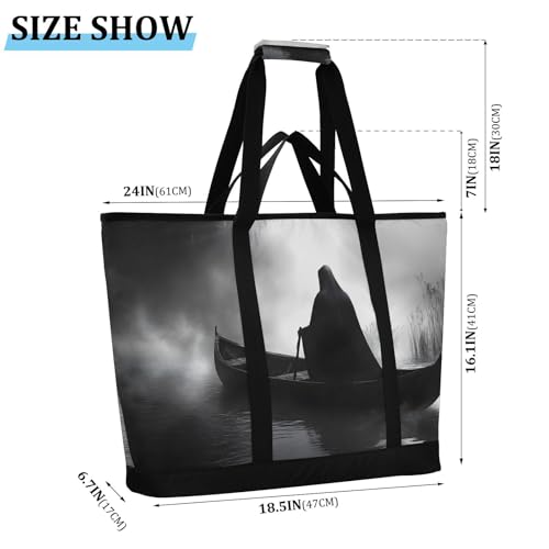 HOT ! Gothic Boat Death Large Insulated Tote Bag for Grocery Shopping Reusable Tote Bags for Women Men, Cooler Bag with Zippered Top & Handles for Beach Picnic Travel