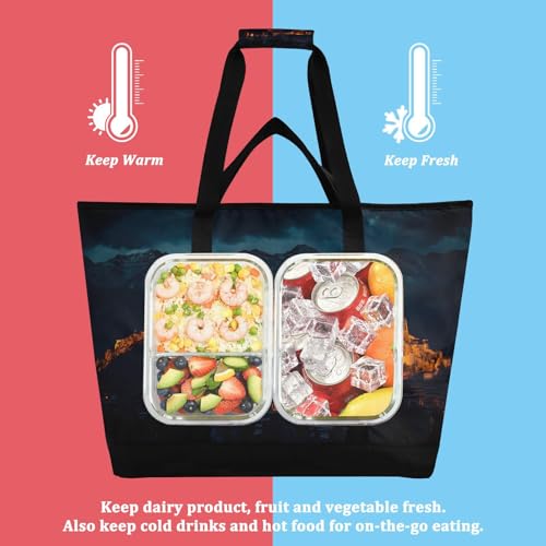 HOT ! Potala Palace Landscape Large Insulated Tote Bag for Grocery Shopping Reusable Tote Bags for Women Men, Cooler Bag with Zippered Top & Handles for Beach Picnic Travel