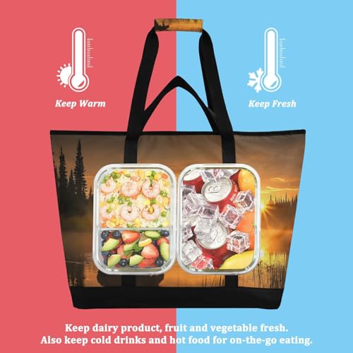 More information about Sunset Moose Landscape Large Insulated Tote Bag for Grocery Shopping Reusable Tote Bags for Women Men, Cooler Bag with Zippered Top & Handles for Beach Picnic Travel
