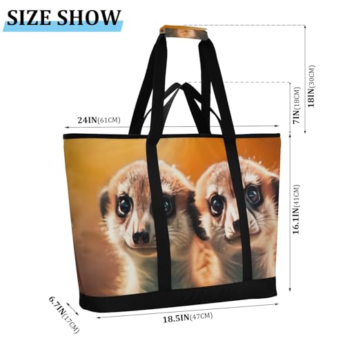 HOT ! Funny Meerkats Head Large Insulated Tote Bag for Grocery Shopping Reusable Tote Bags for Women Men, Cooler Bag with Zippered Top & Handles for Beach Picnic Travel