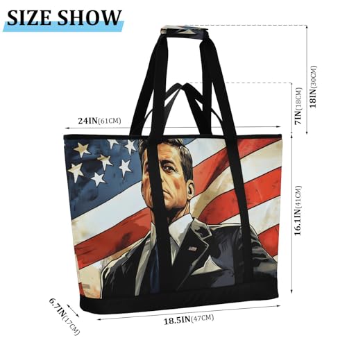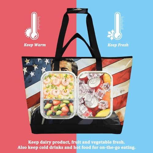 HOT ! Man American Flag Large Insulated Tote Bag for Grocery Shopping Reusable Tote Bags for Women Men, Cooler Bag with Zippered Top & Handles for Beach Picnic Travel