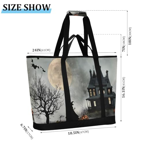 HOT ! Halloween Witch Moon Large Insulated Tote Bag for Grocery Shopping Reusable Tote Bags for Women Men, Cooler Bag with Zippered Top & Handles for Beach Picnic Travel