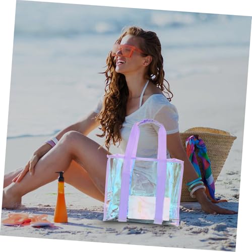 FRCOLOR Large Capacity Beach Bag for Women Straw Beach Tote Bag Iridescent Pool Storage Coastal Tote Travel Pouch Summer Outings Accessory 1