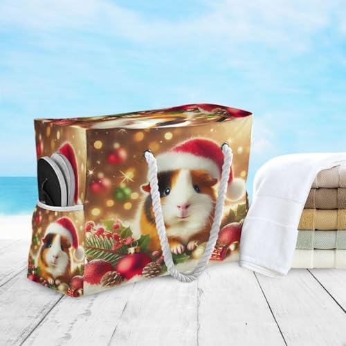 HOT ! Christmas Guinea Pig Beach Tote Bag for Women Beach Bags Waterproof Swim Pool Bag Extra Large Travel Tote Bags with Zipper for Yoga Gym Women Vacation Essentials Nurse