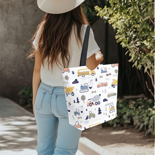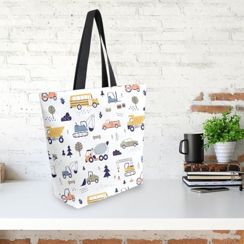 Cartoon Car Vehicle Printed Canvas Tote Bag for Women with Zipper Pocket Reusable Grocery Shopping Bags Large Travel Shoulder Bag Handbag Bags 6