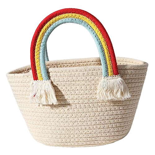 • Lovely holiday bag--the rainbow handle cotton rope woven can be a birthday present choice for your friends, they will like it,Girl Holiday Bag