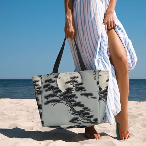 HOT ! Pine Tree Under The Moon Large Capacity Waterproof Sandproof Multifunctional Beach Travel Camping Picnic Storage Bag