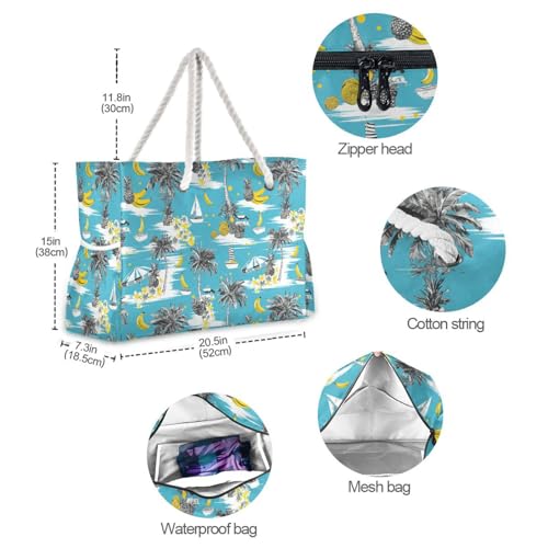 JUNZAN Funny Hawaii in Blue Beach Tote Bag with Handles Swim Pool Bag Beach Totes Bags for Women with Waterproof Pockets 4