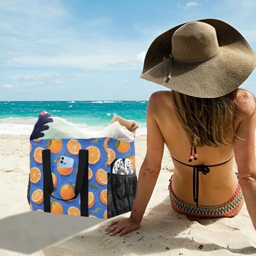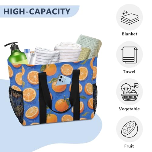 Orange Fruit Blue Art Painting Utility Bag For Trunk Foldable Sandproof Canvas Beach Bags 7