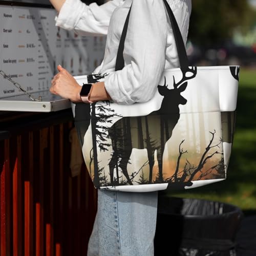 HOT ! Beach Bags For Women Large Waterproof Sandproof Beach Tote Bag Lightweight Zipper Carry On Bag Deer Silhouette Pool Bag For Gym Travel Vocation