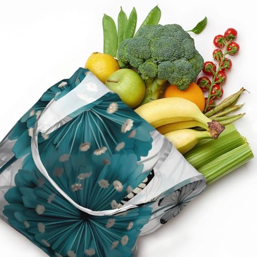 More information about (Gray Teal Flower Butterfly) Large Tote Shoulder Bag Fashion Canvas Handbag Reusable Shopping Bag Travel Bag For Women