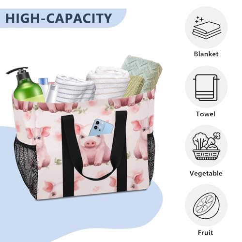 YETTASBIN Pink Pig Large Foldable Travel Tote Bag, Lightweight Waterproof Swim Pool Bag with Handles & Pocket for Beach Outdoor, Reusable Grocery Bag for Kitchen, Shopping 7
