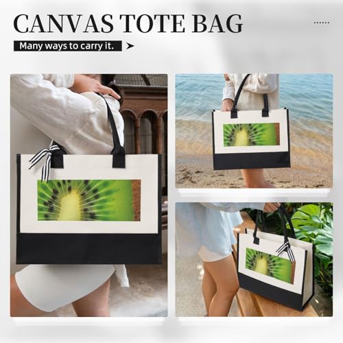 HOT ! Canvas Tote Bag for Women Beach Tote Purse Reusable Grocery Bag Kiwi texture picture Aesthetic Shopping Bags