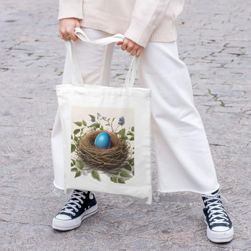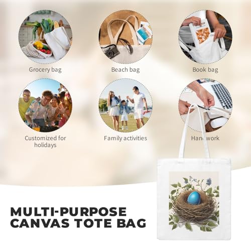 Reusable Heavy-Duty Canvas Tote Bag, Birds Nest handbag 15.75x13.87 Inch, Large Eco-Friendly Shopping Tote for Travel, Gym, Gifts, Machine Washable 7