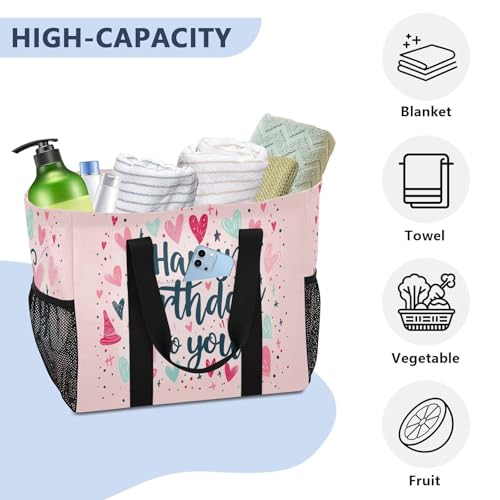 YETTASBIN Happy Birthday Large Foldable Travel Tote Bag, Lightweight Waterproof Swim Pool Bag with Handles & Pocket for Beach Outdoor, Reusable Grocery Bag for Kitchen, Shopping 4