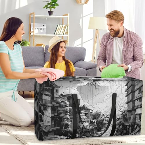 HOT ! Modern City Extra Large Moving Bags Heavy Duty Storage Bags Graffiti City Cloth Wrap Around Handles Double Zipper Reusable Convenient Foldable Storage Tote for Travel Camping Space Save