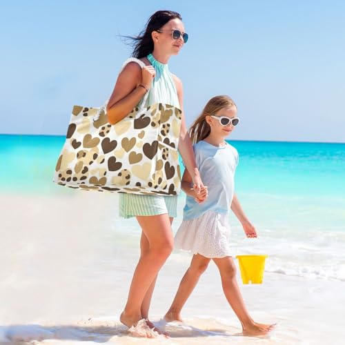 Brown Leopard Heart Sandproof Tote Carry On Luggage with side pocketes Weekender Overnight Bag with zippered pockets 3
