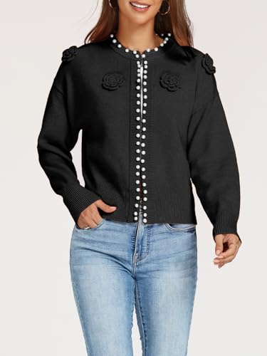 • Style: Womens knit sweater, womens sweaters cardigan, pearl trimmed cardigan, pearl sweaters for woman, long sleeve knit sweater, white pearl sweater, crewneck knit jacket, knit cardigan pearl sweater, black cardigan for women