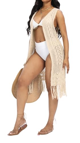 More information about Women's Boho Open Front Crochet Cardigans Tassels Duster Beach Outwear