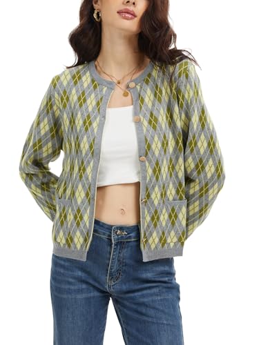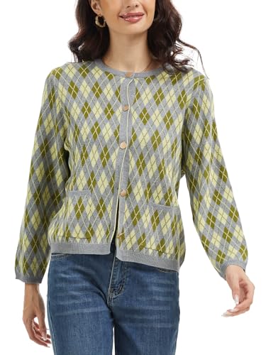 • FEATURE: Our womens retro coatigan features a vintage argyle pattern, crew neck, round buttons, and functional pockets, this button - down cardigan blends retro charm with practicality. The ribbed trim and tailored fit add a polished touch to casual or preppy styles