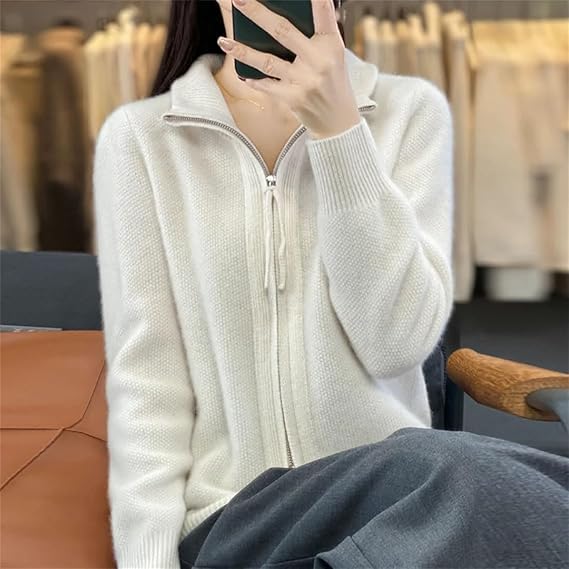 HOT ! Women's Wool Knitting Sweater Turtleneck Zipper Cardigan, Full Zip Mock Neck Thick Warm Wool Sweater for Women