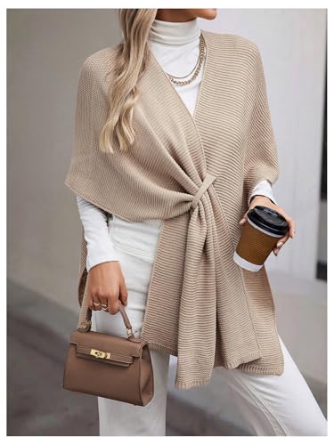 • V Neck, Cross Front, Shawls and Wraps, Knit Cloak Cardigan Sweater