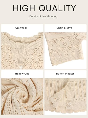 ECOWISH Summer Crochet Cardigans for Women: 2025 Lightweight Short Sleeve Crewneck Button Down Cropped Casual Sweater Tops 6