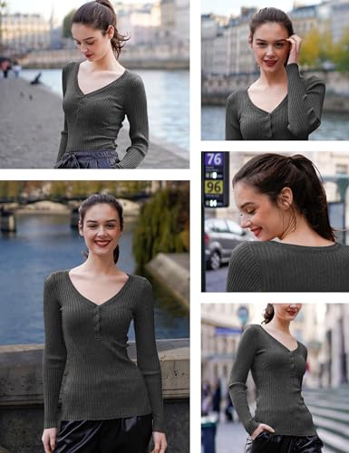 More information about v28 Women Tops Long Sleeve V Neck Henley Button Up Casual Sexy Slim Fit Ribbed Knit Knitwear Pullover Sweater